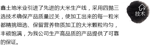 坐落在國(guó)家優(yōu)質(zhì)寒地水稻生產(chǎn)基地之一的松嫩平原腹地綏化市秦家鎮(zhèn),諾敏河,呼蘭河澆灌的黑色草甸土地,富含硒 鉀 鈣 鐵等礦物質(zhì),無(wú)污染的環(huán)境,豐產(chǎn)的水稻資源,使鑫土地米業(yè)不斷發(fā)展壯大,成為綏化地區(qū)新崛起的一支精制大米生產(chǎn)的生力軍。